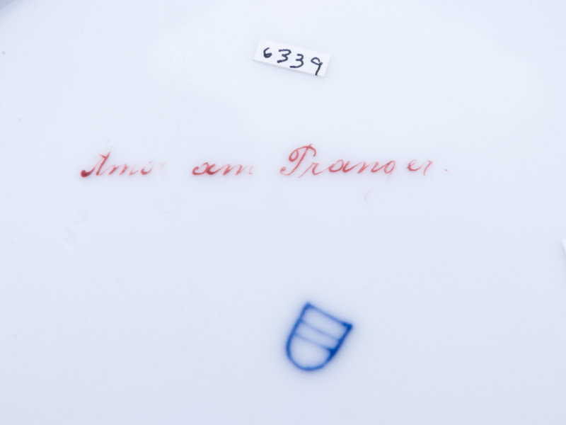 inscribed Amor am Pranger and bearing a beehive mark in underglaze blue to the underside.