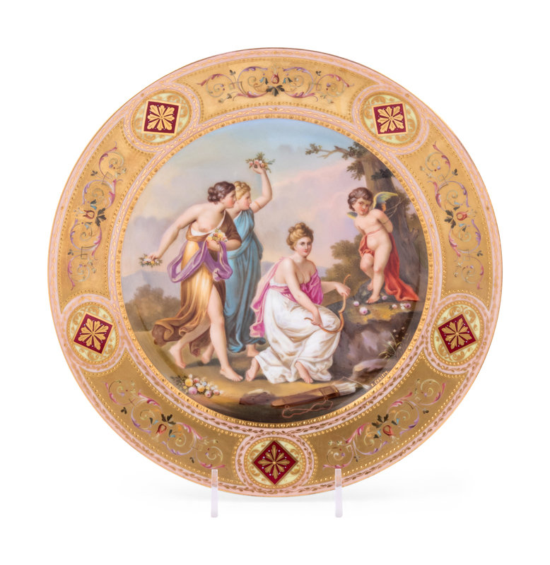 A Vienna Painted and Gilt Enamel Porcelain Cabinet Plate