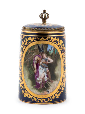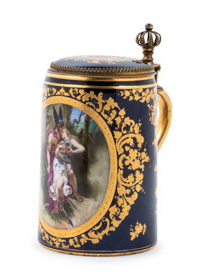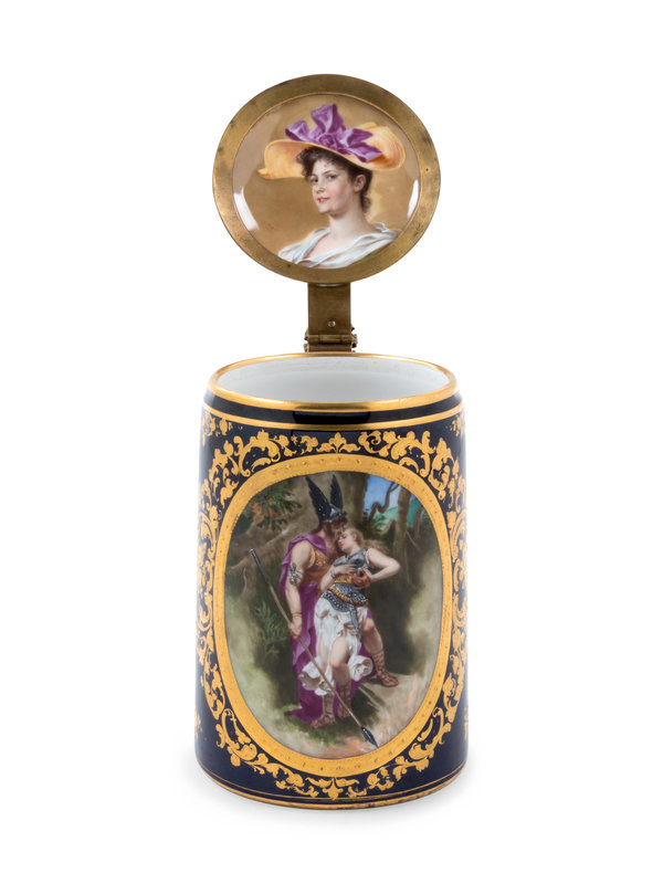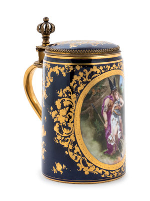 A Vienna Style Painted and Parcel Gilt Porcelain Tankard
