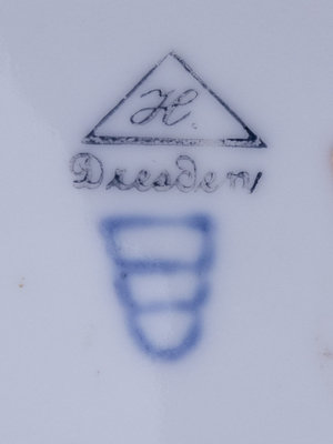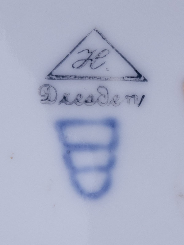 depicting Woton Takes Leave of Brunhild, after Konrad Dielitz (German, 1845-1933), transfer-printed Dresden to the underside.