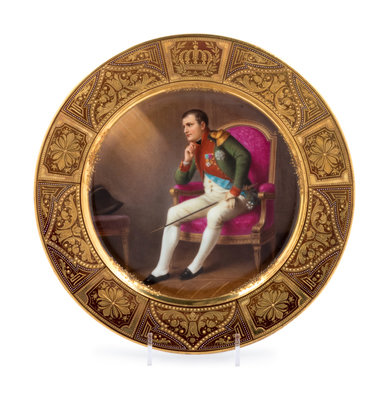 A German Painted and Parcel Gilt Napoleonic Porcelain Cabinet Plate
