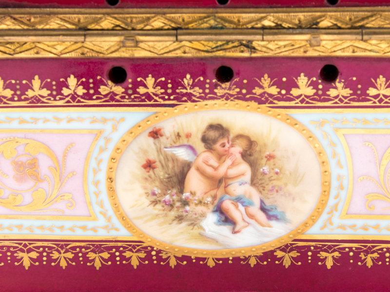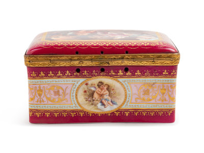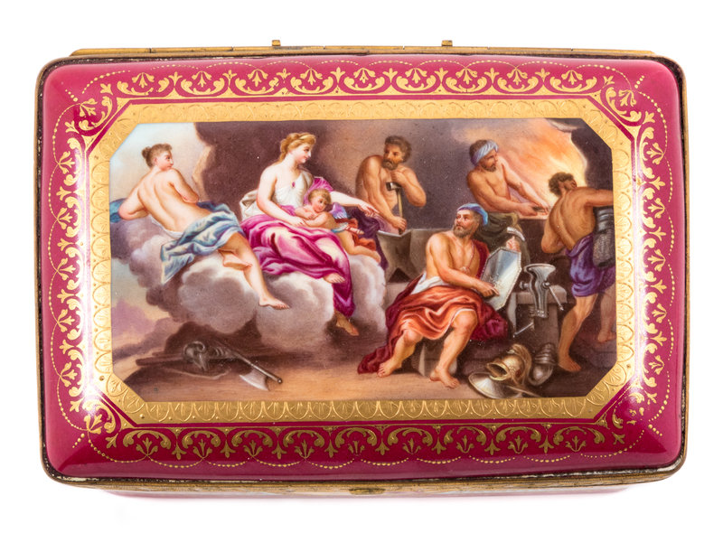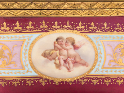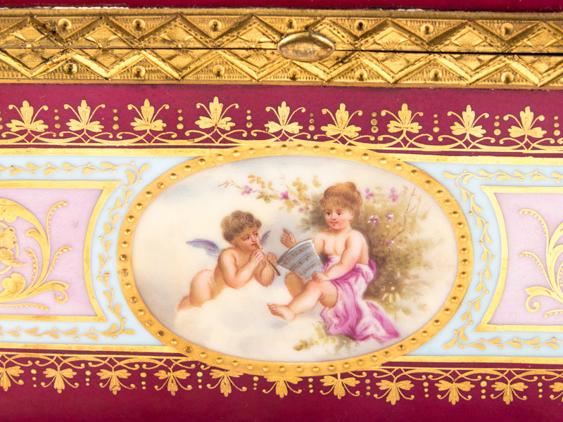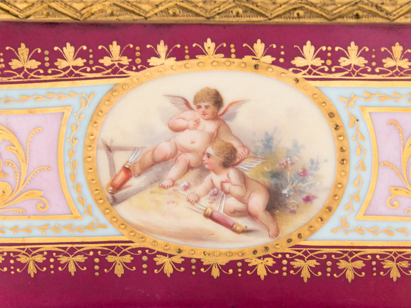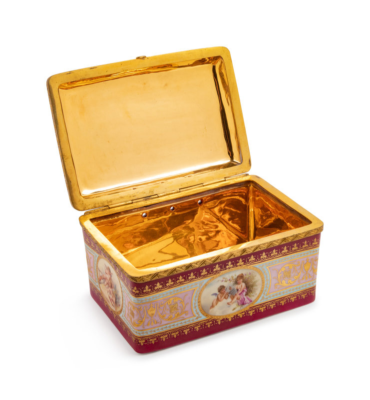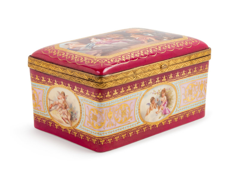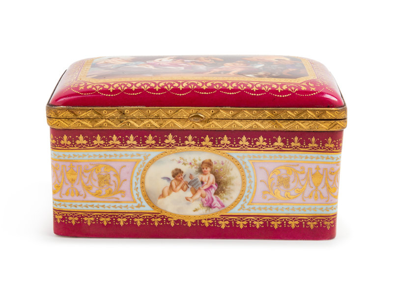 A Vienna Gilt Metal Mounted, Painted and Parcel Gilt Porcelain Table Casket