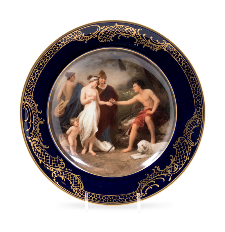 A Vienna Style (Fischer & Mieg) Painted and Parcel Gilt Porcelain Cabinet Plate