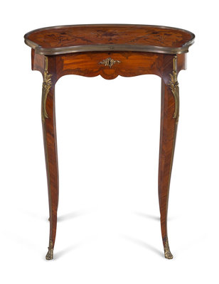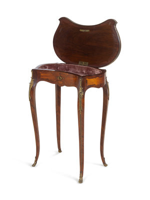A Louis XV Style Gilt Bronze Mounted Marquetry Table à Ouvrage