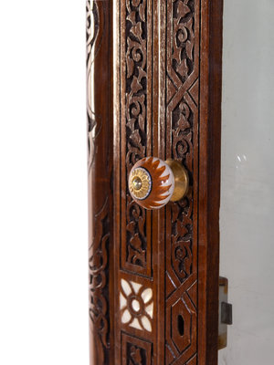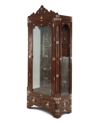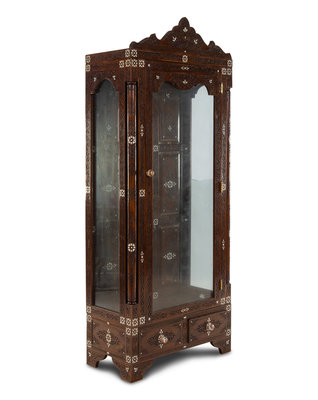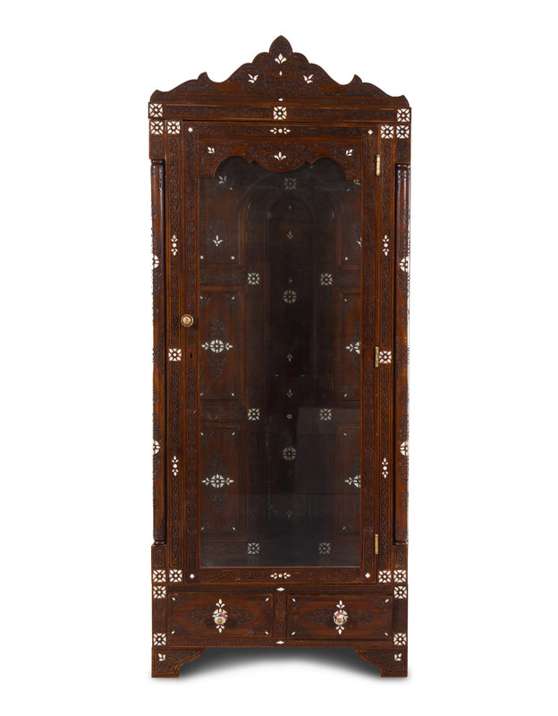 A Syrian Mother-of-Pearl Inlaid and Carved Walnut Vitrine Cabinet