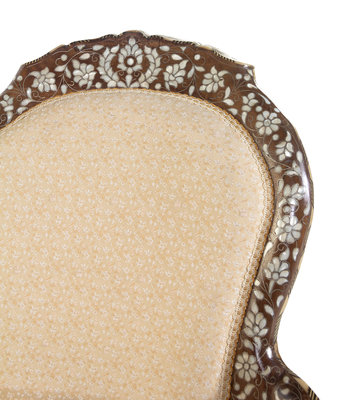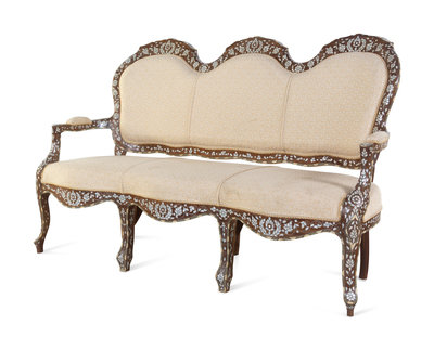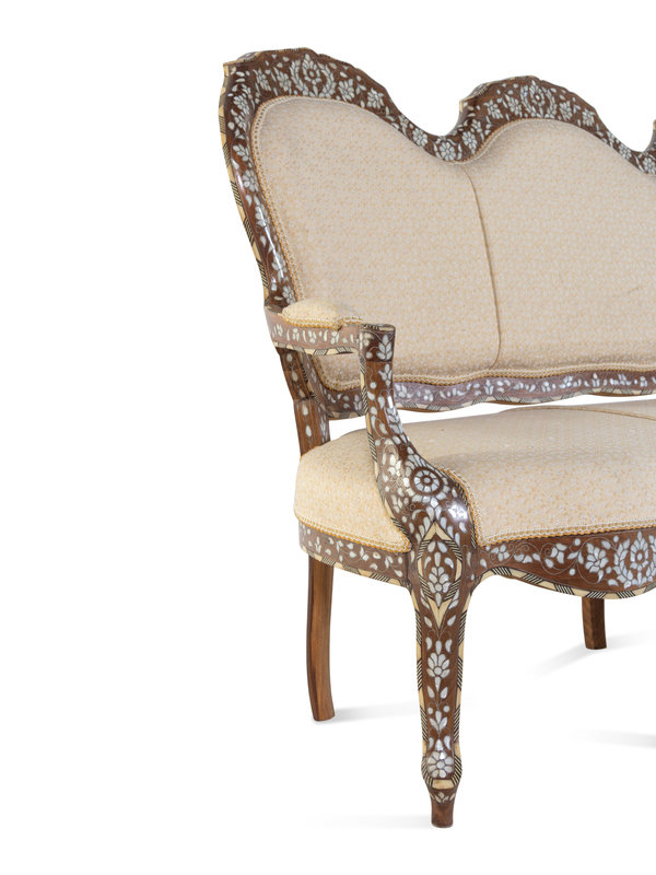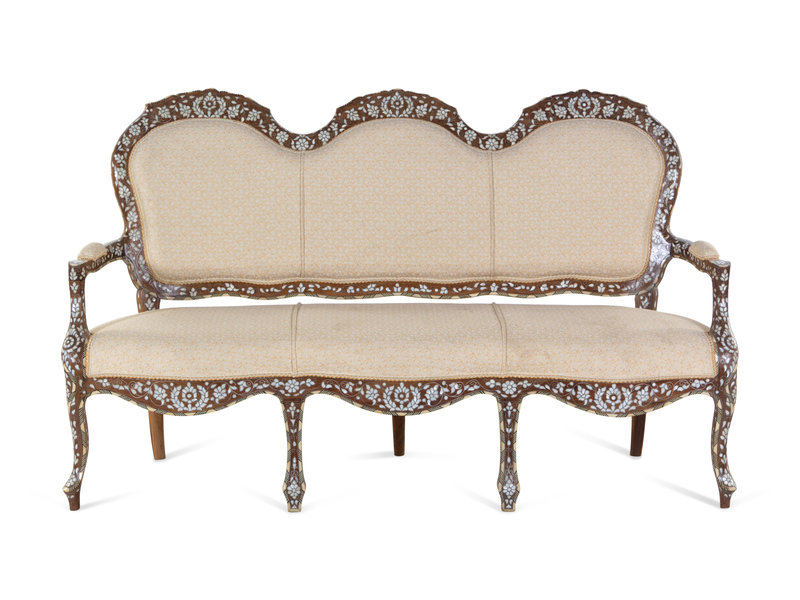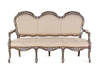 A Syrian Mother-of-Pearl and Metal Inlaid Walnut Settee