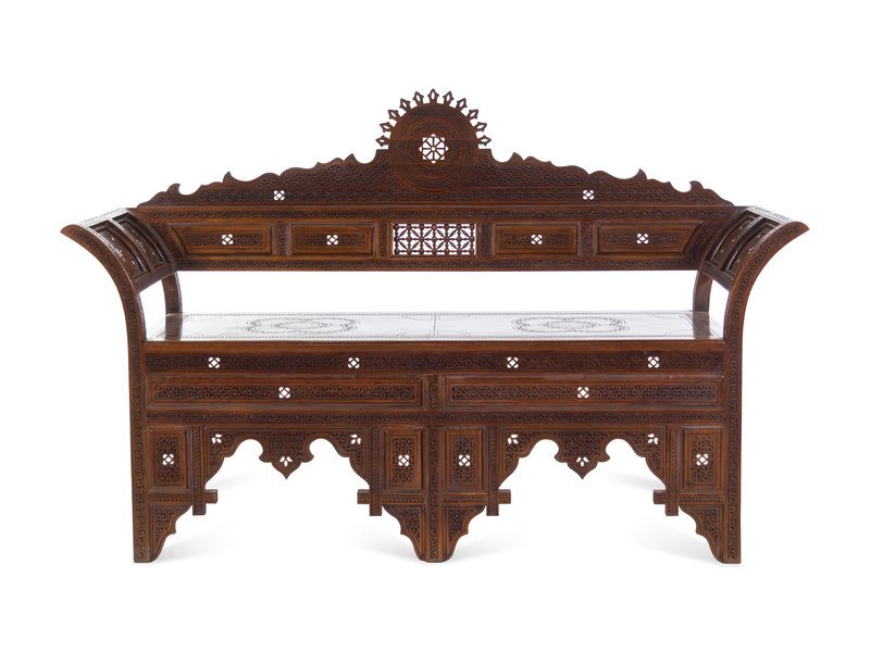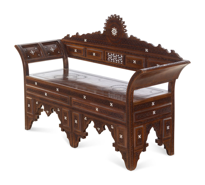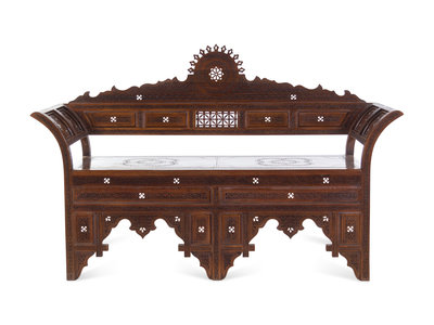 A Syrian Mother-of-Pearl Inlaid Walnut Settee