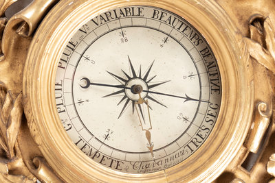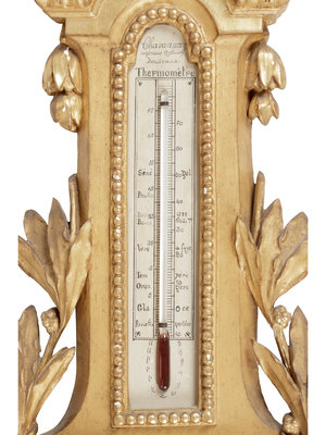 A Louis XV Style Carved Giltwood Barometer and Thermometer
