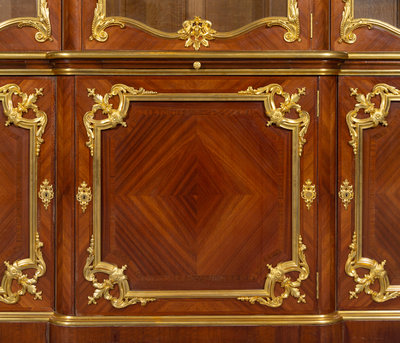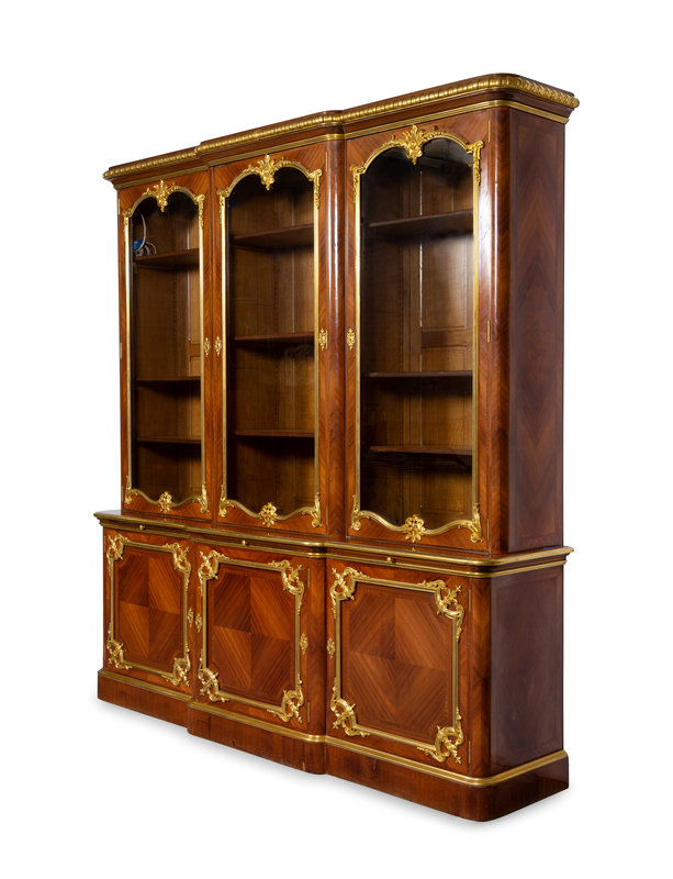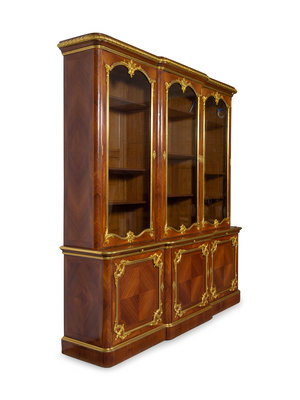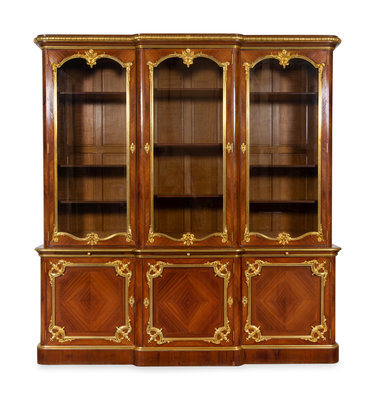 A Louis XV Style Gilt Bronze Mounted Kingwood Breakfront Cabinet