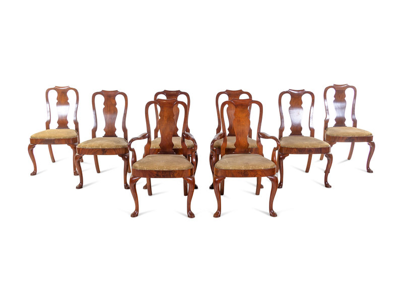A Set of Eight Queen Anne Style Mahogany Dining Chairs
