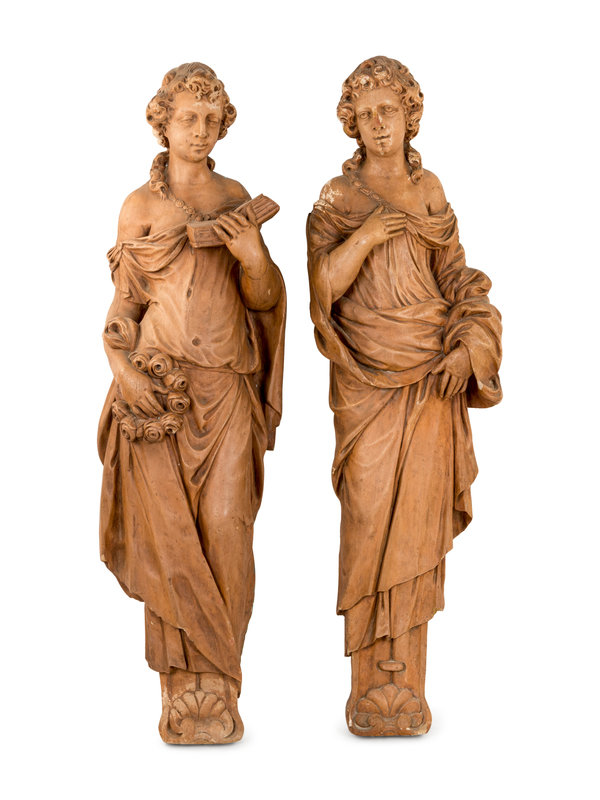 A Pair of Terra Cotta Corbel Figures