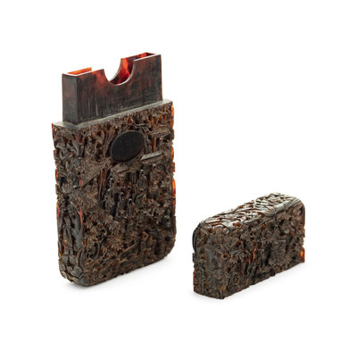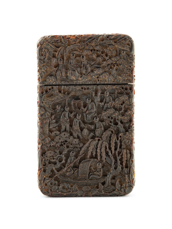 A Chinese Carved Tortoise Shell Card Case