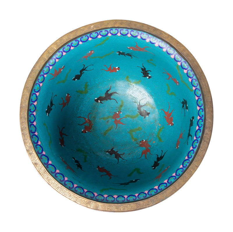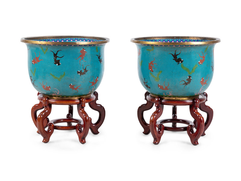 A Pair of Chinese Cloisonné Fish Bowls and Stands