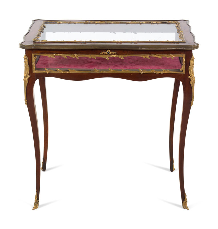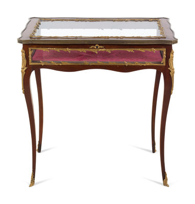 A Louis XV Style Gilt Metal Mounted Mahogany Vitrine Table