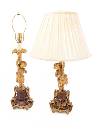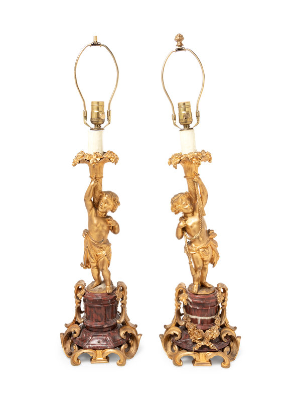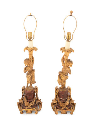 A Pair of Louis XV Style Gilt Bronze Figural Candlesticks