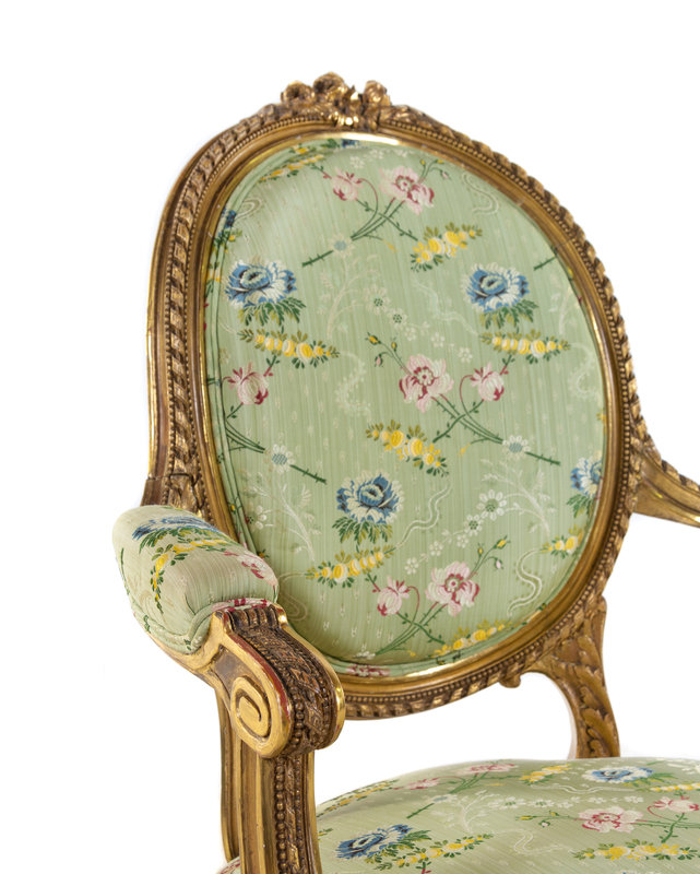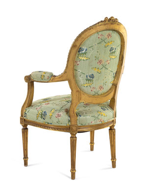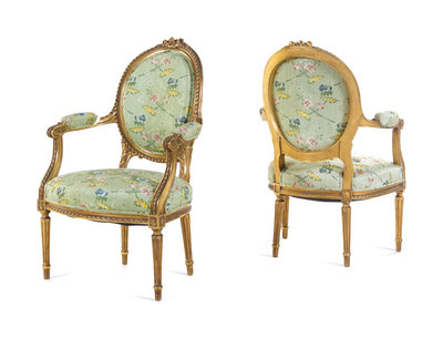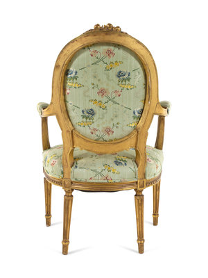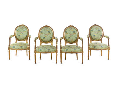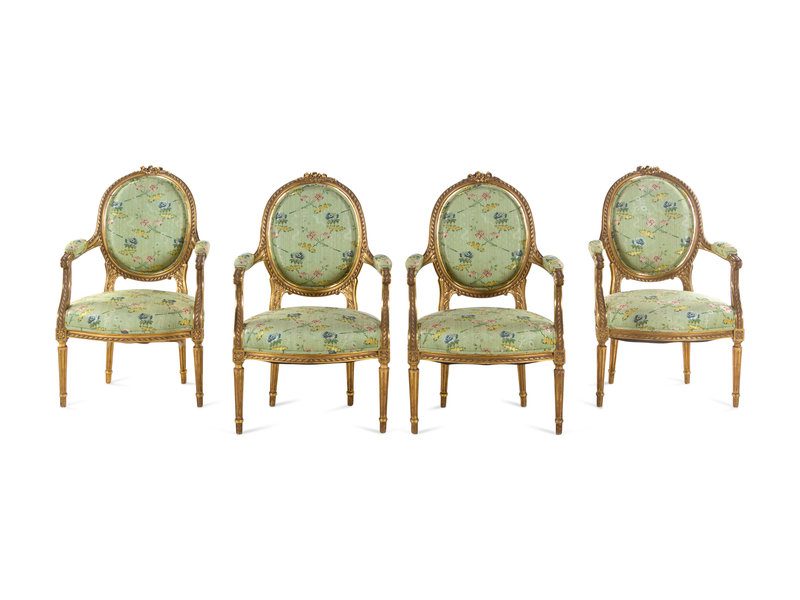 A Set of Four Louis XVI Style Carved Giltwood Fauteuils