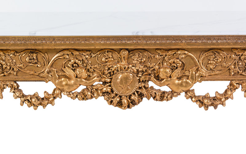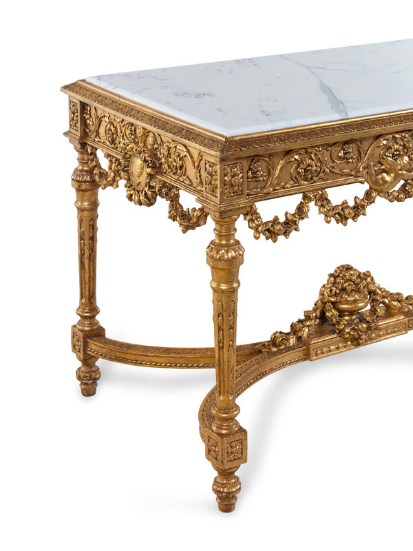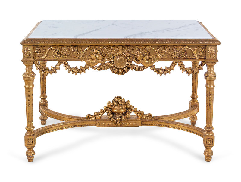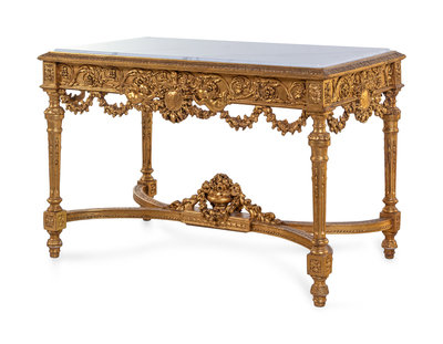 A Louis XVI Style Carved Giltwood Marble-Top Center Table