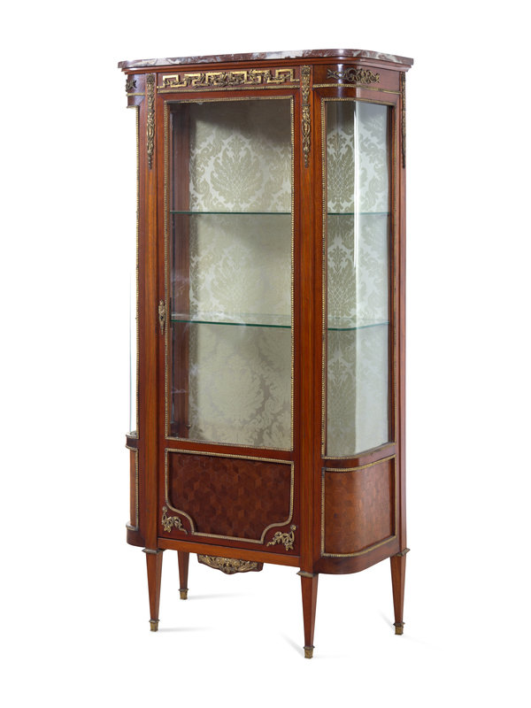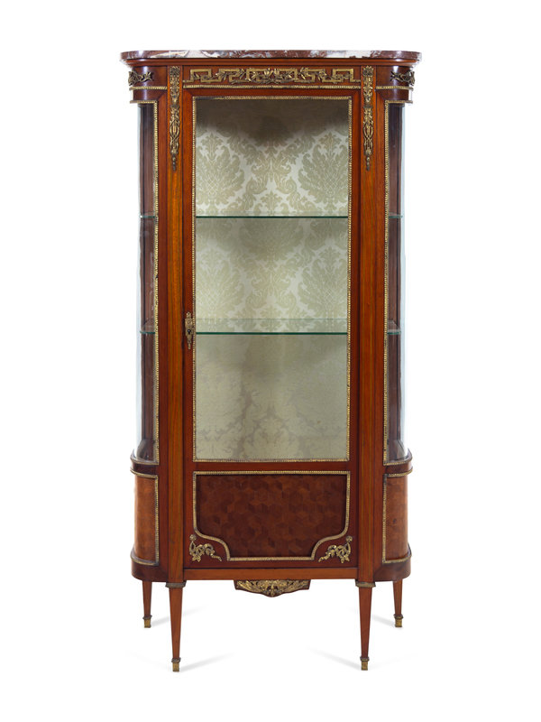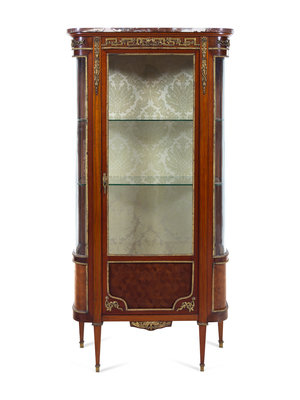 A Louis XVI Style Gilt Bronze Mounted Parquetry Vitrine Cabinet