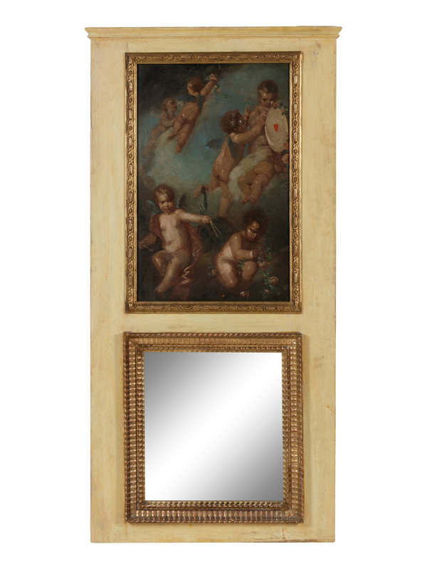 A Louis XVI Style Painted and Parcel Gilt Trumeau Mirror