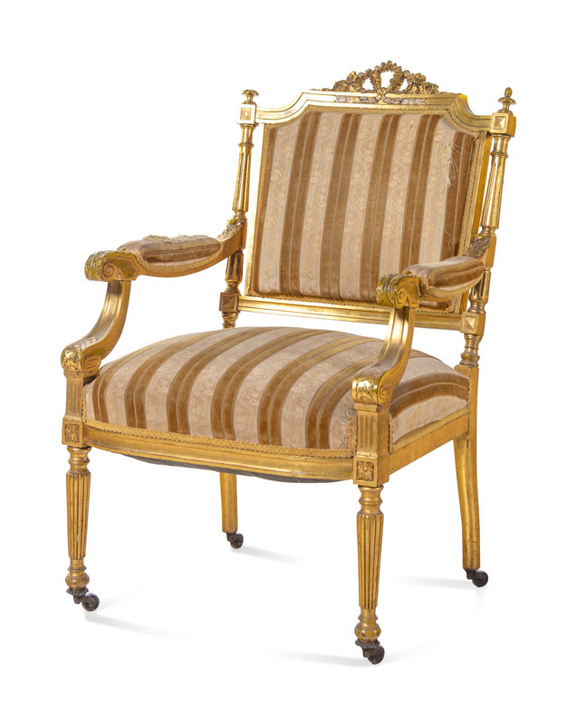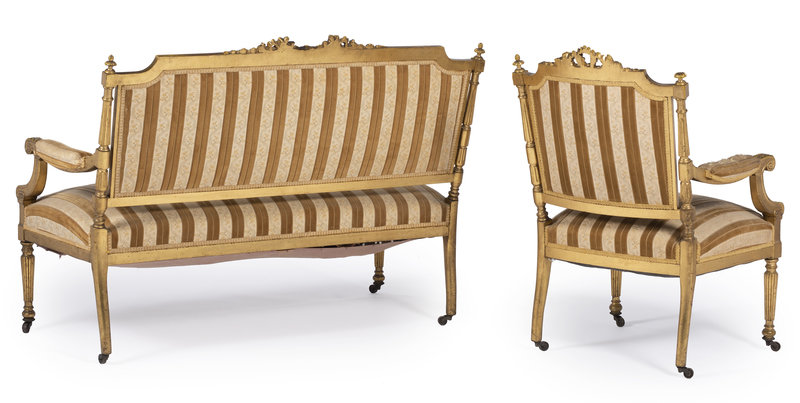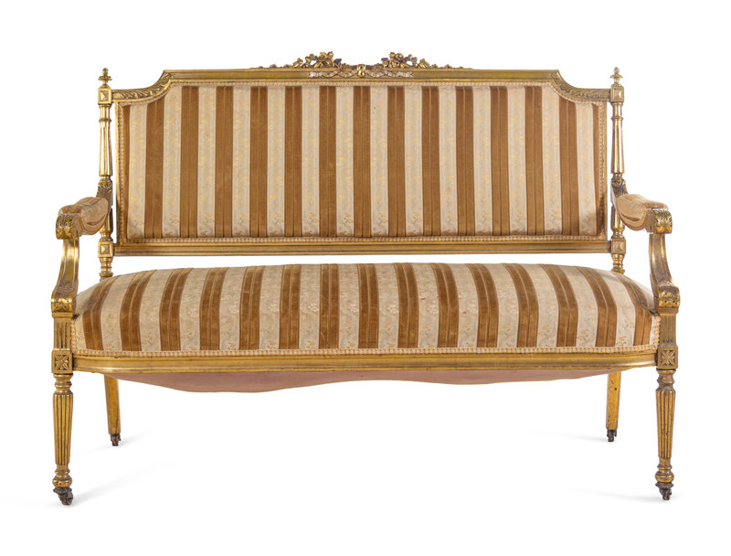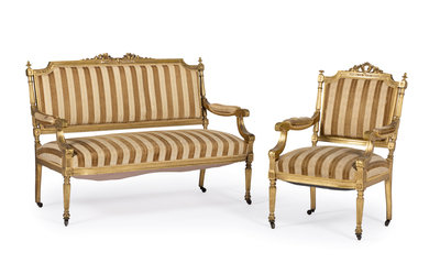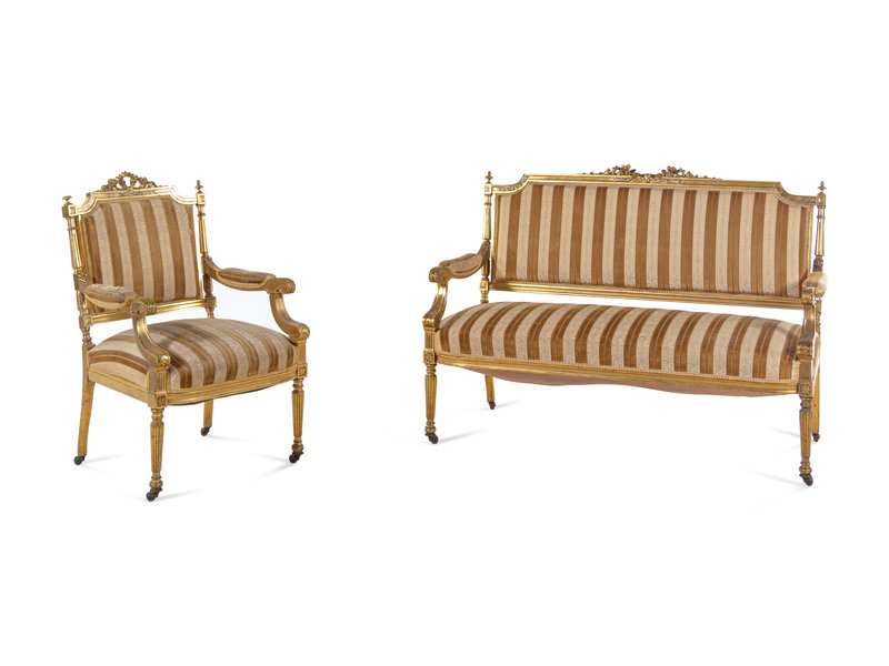 A Louis XVI Style Carved Giltwood Settee and Fauteuil