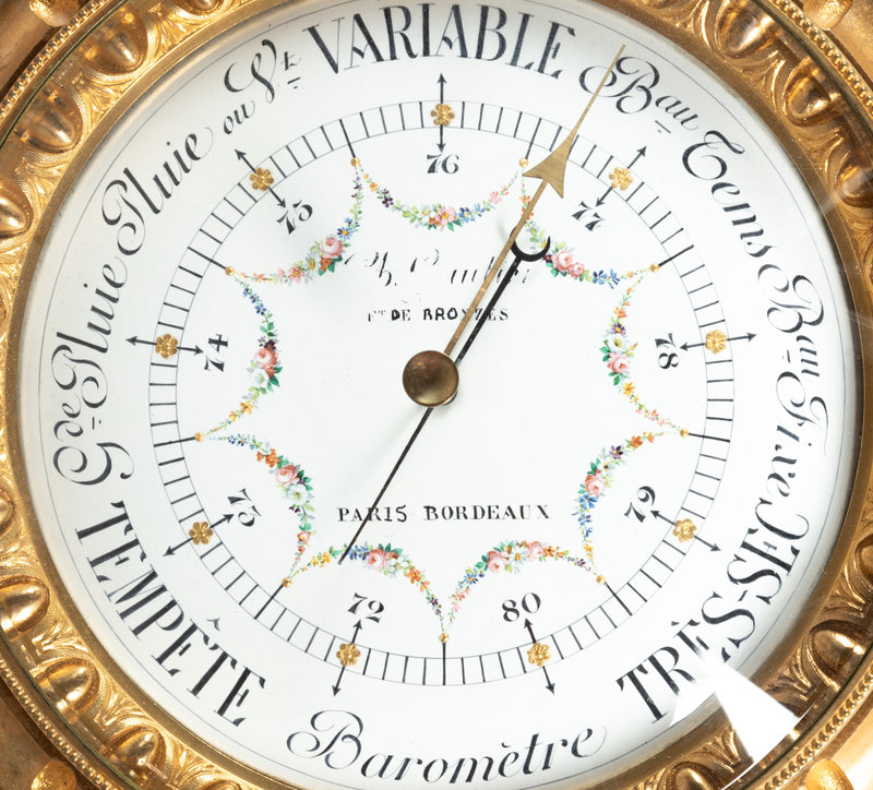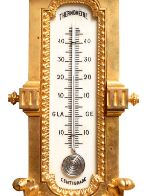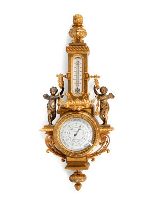 A Louis XVI Style Gilt Bronze Barometer and Thermometer