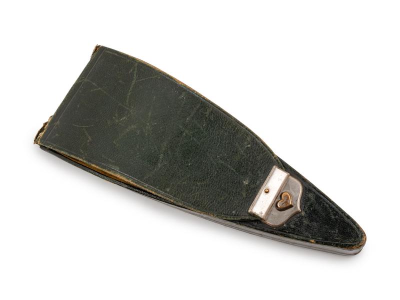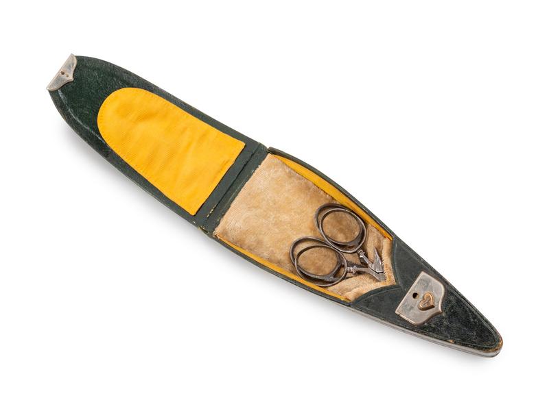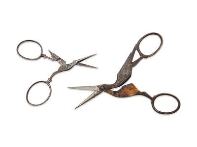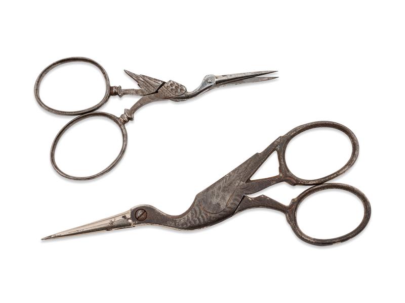 Two Pairs of Continental Steel Bird-Form Needlework Scissors in a Leather Case