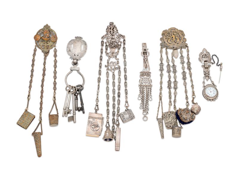 Six Silver and Silver-Plate Chatelaines