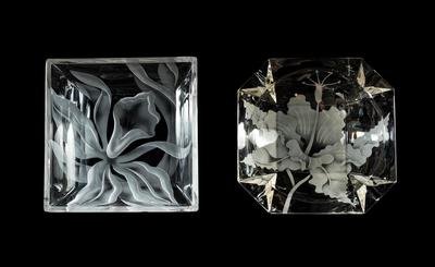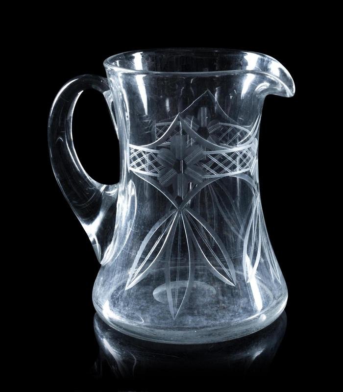 comprising a wheel cut silver-plate mounted jar, an etched pitcher, a Heisy tray, and 7 other examples; 10 items total.
