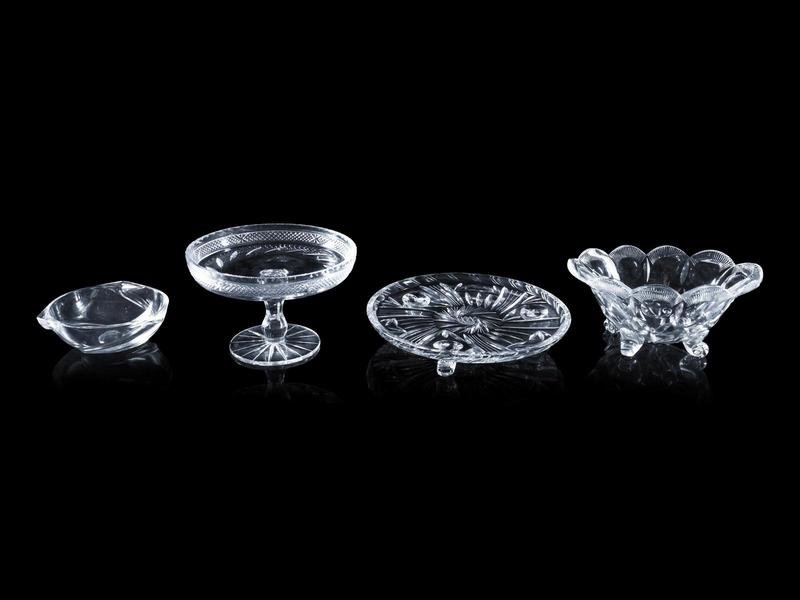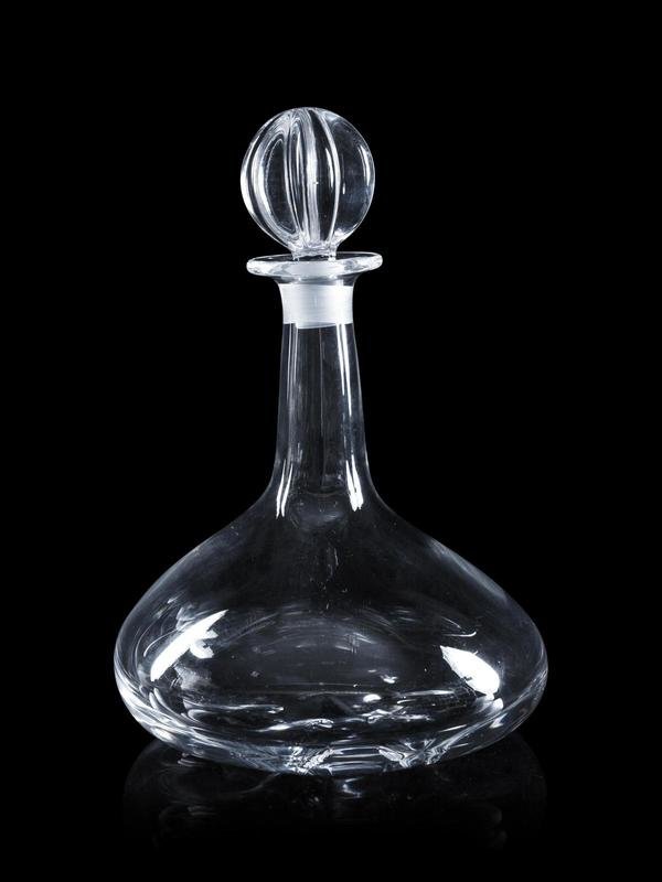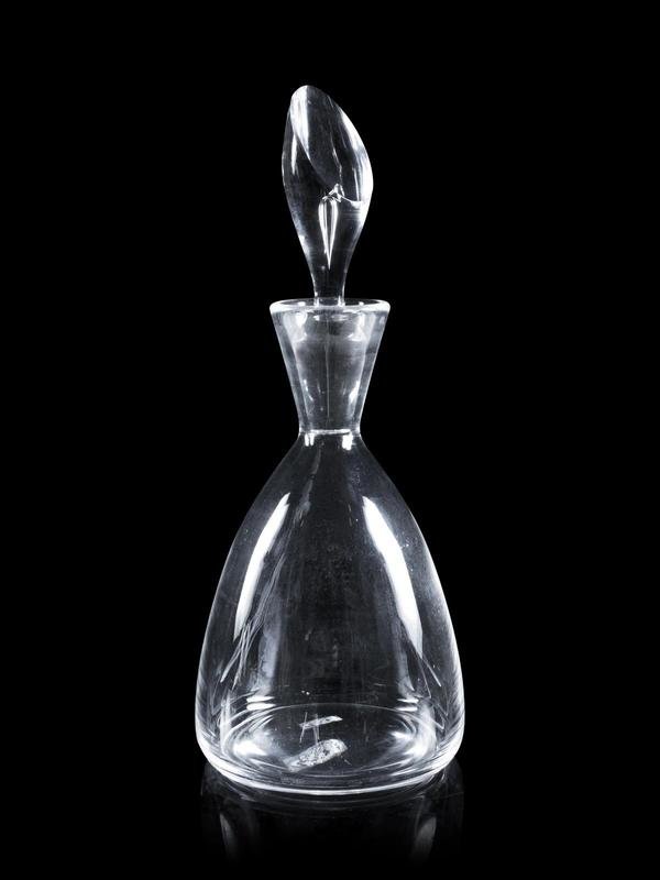 comprising a Bohemian cut to clear example; a Steuben example and an Orrefors example; together with four other glass table articles; 7 items total.