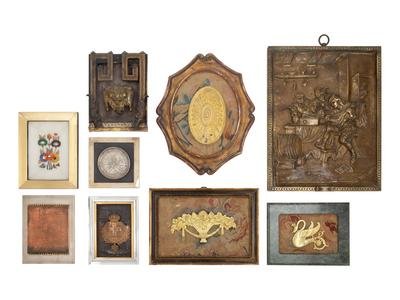 comprising a copper relief, three gilt bronze mounts, a pietra dura plaque and four other examples.