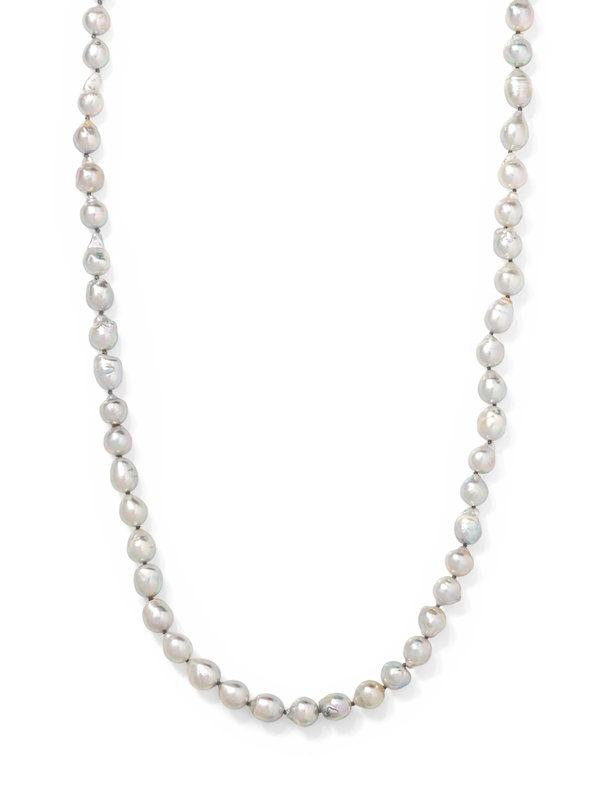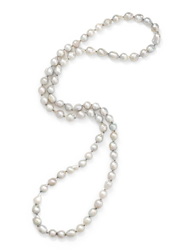Containing numerous Baroque pearls measuring approximately 8.00-10.00 mm, strung knotted in an endless style.