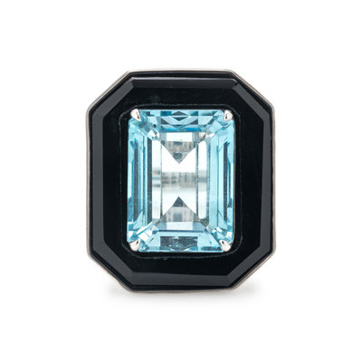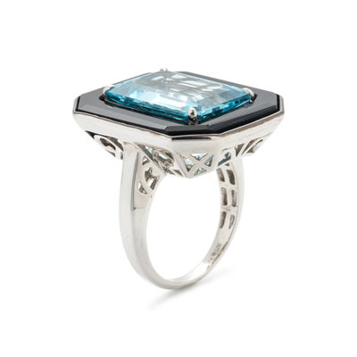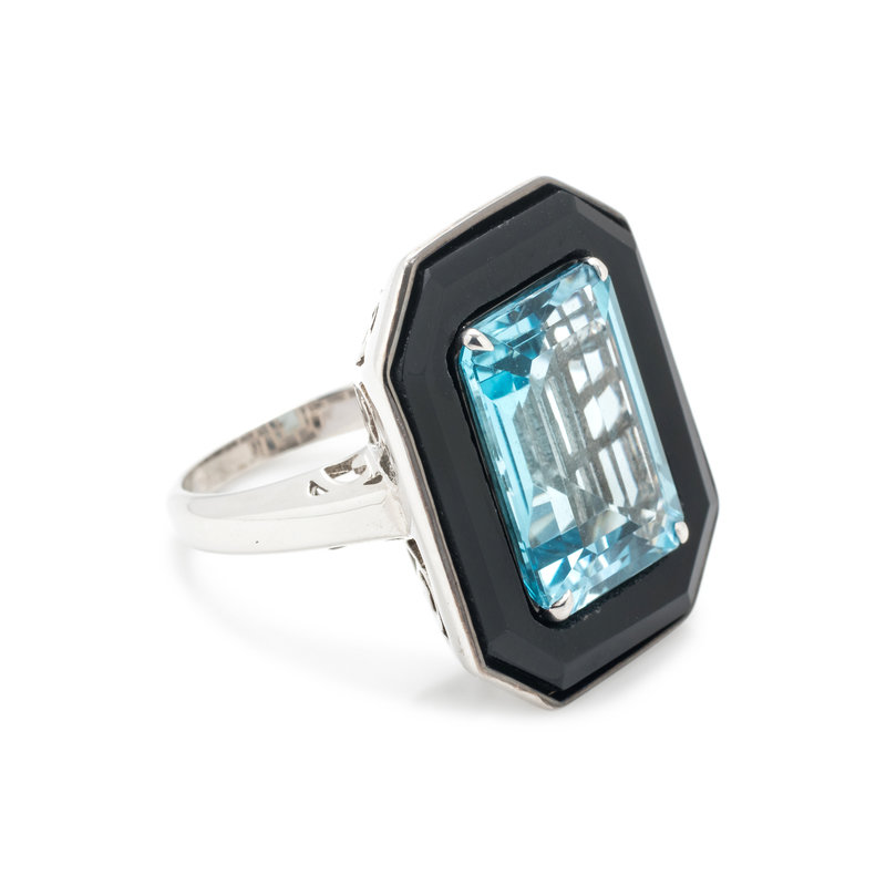 BLUE TOPAZ AND ONYX RING