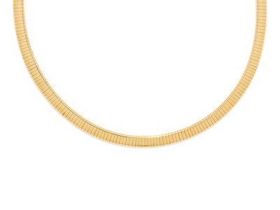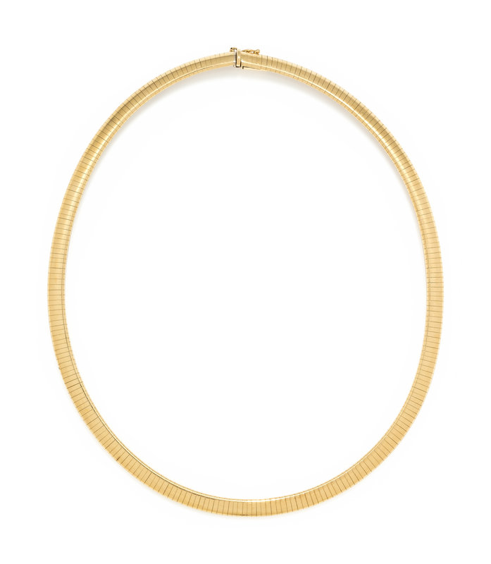 Consisting of an omega chain measuring approximately 6.00 mm wide.