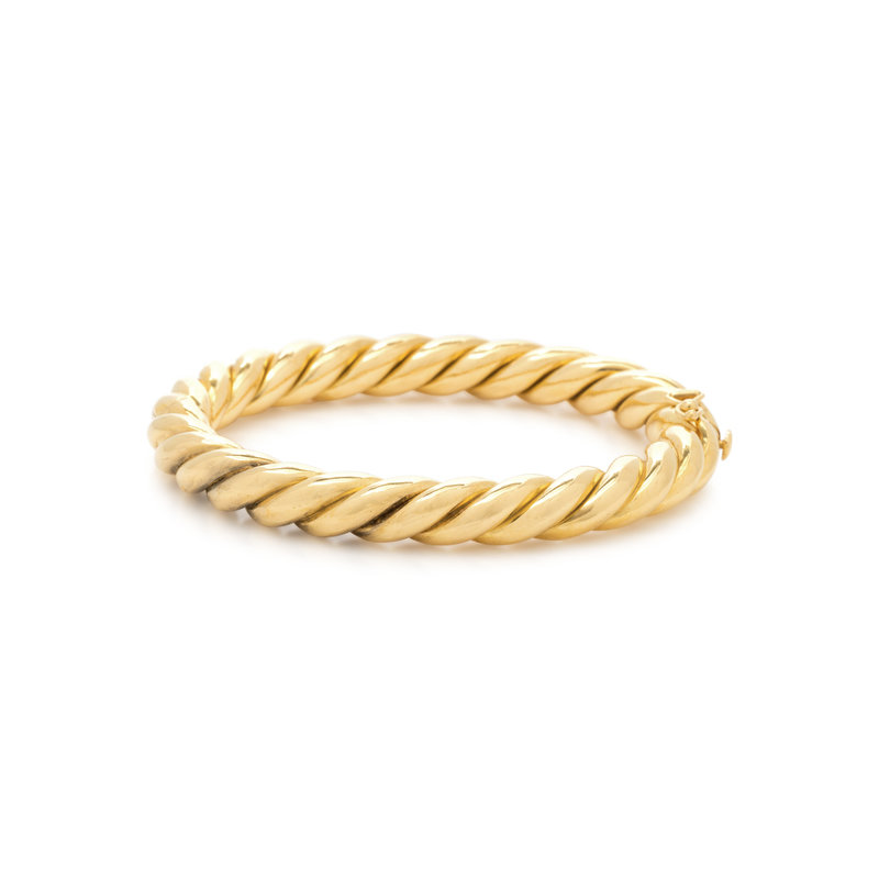 Consisting of a twisted design, hinged with side clasp.