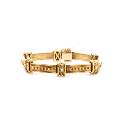 Containing seven round brilliant cut diamonds weighing approximately 0.35 carat total.