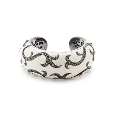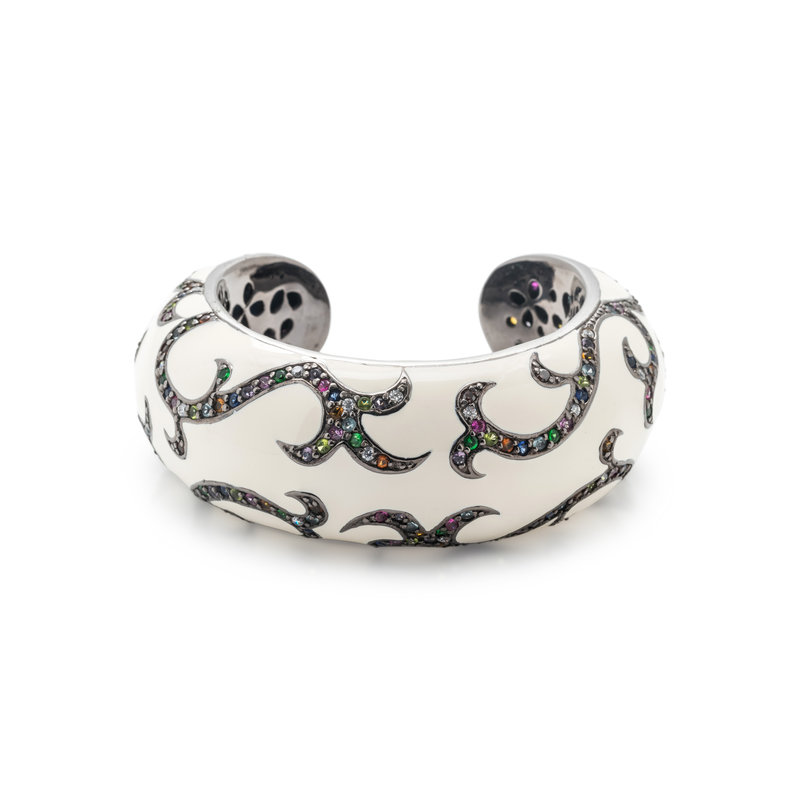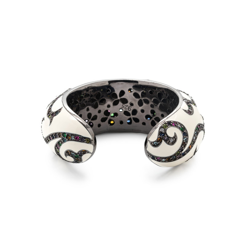 WHITE ENAMEL AND BLACKENED SILVER CUFF BRACELET
