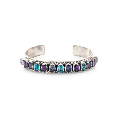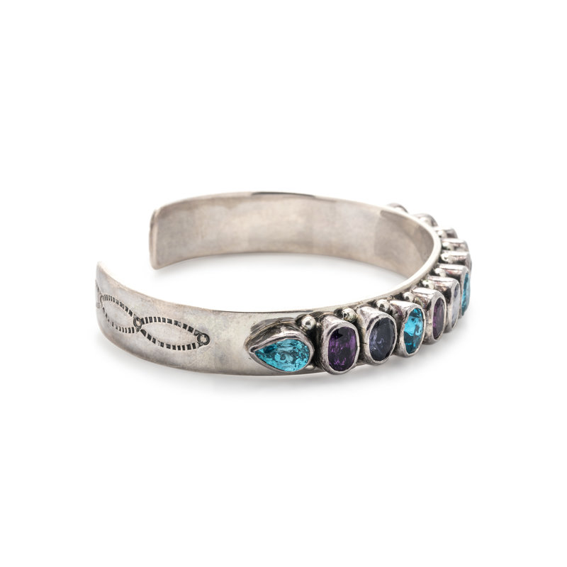 GILBERT NELSON, STERLING SILVER AND GLASS CUFF BRACELET