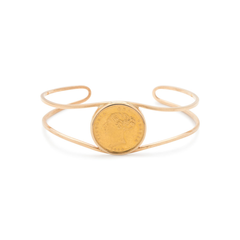YELLOW GOLD AND BRITISH SOVEREIGN COIN CUFF BRACELET