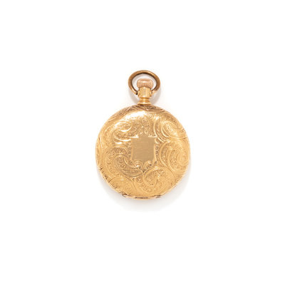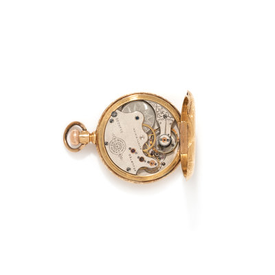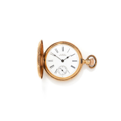 WALTHAM, 18K YELLOW GOLD HUNTER CASE POCKET WATCH