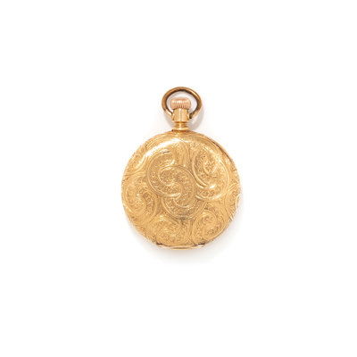 35.00 mm case diameter, white dial, black Roman numerals, subdial for seconds at 6 o'clock, engraved case with blank cartouche, manual wind nickel movement signed A.W.W.Co. RIVERSIDE WALTHAM.