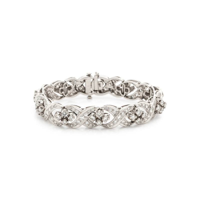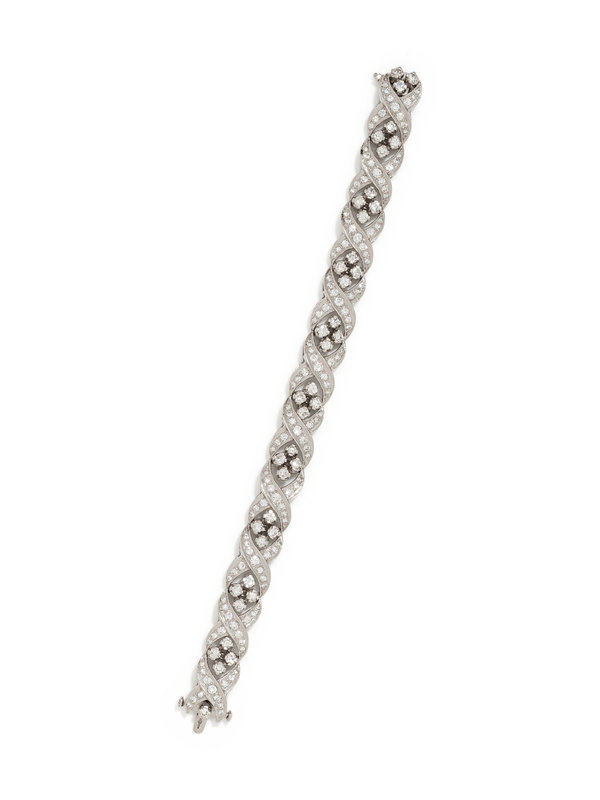 Containing numerous round brilliant cut diamonds weighing approximately 5.00 carats total. Mounted in white gold.