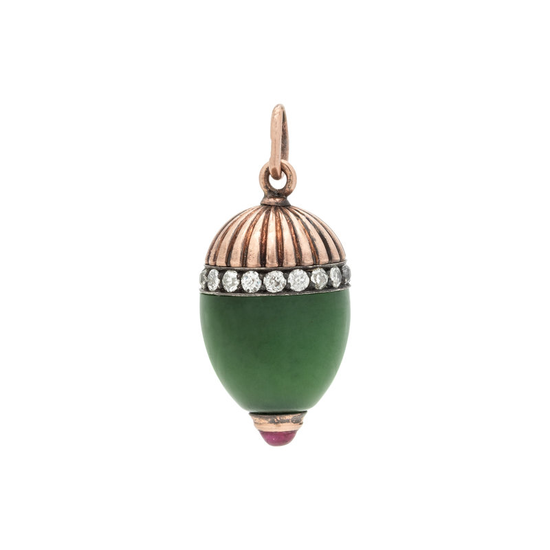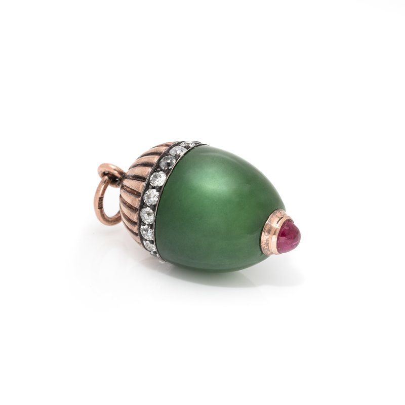 RUSSIAN, ANTIQUE, DIAMOND, RUBY AND NEPHRITE PENDANT