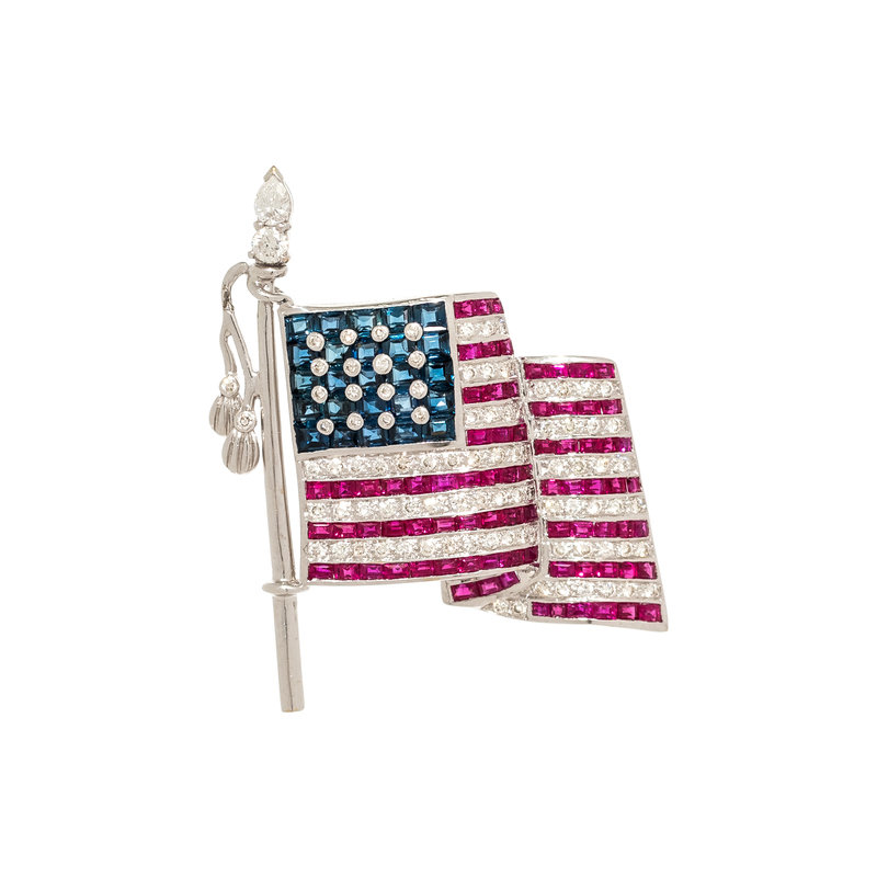 SAPPHIRE, RUBY AND DIAMOND FLAG BROOCH