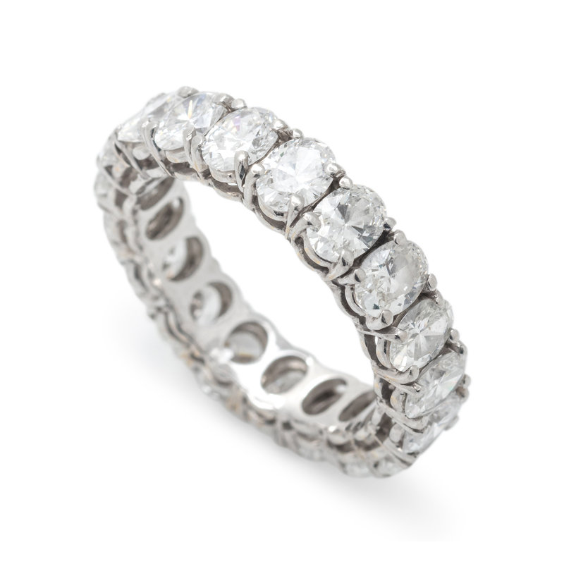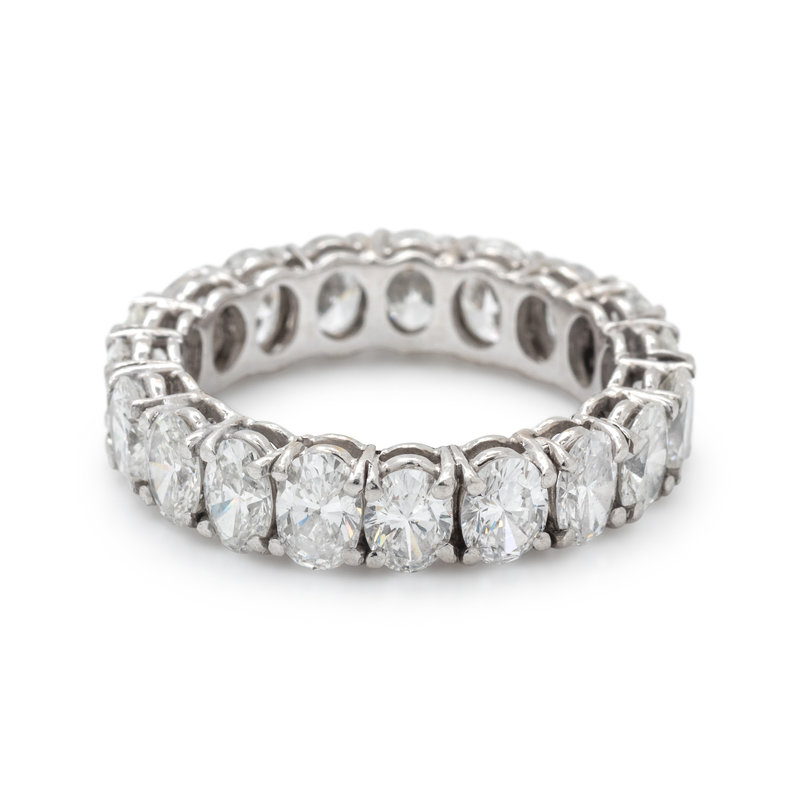 Containing 19 oval brilliant cut diamonds weighing approximately 3.40 carats total. Mounted in platinum. Ring size 6.
