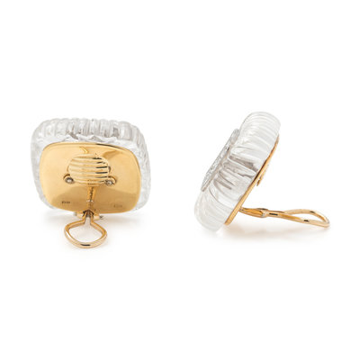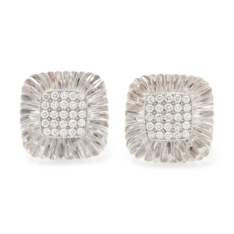 Consisting of carved rock crystal borders and 50 round brilliant cut diamonds weighing approximately 4.00 carats total. Mounted in platinum and yellow gold.