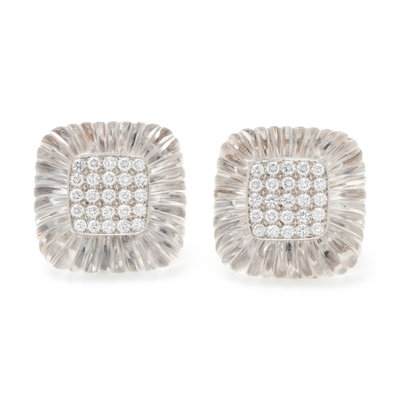 ROCK CRYSTAL AND DIAMOND EARCLIPS