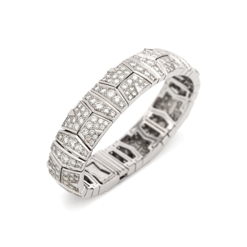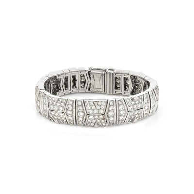 Containing numerous round brilliant cut diamonds weighing approximately 12.25 carats total. Mounted in white gold.