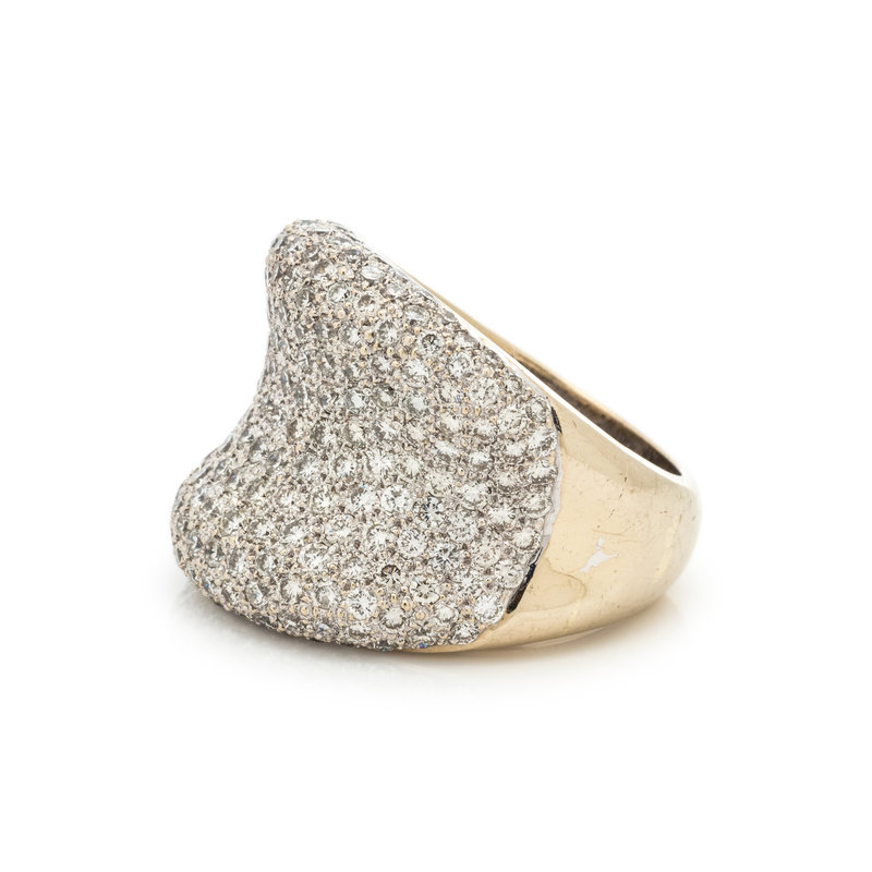Containing numerous round brilliant cut diamonds weighing approximately 3.40 carats total. Mounted in gold.