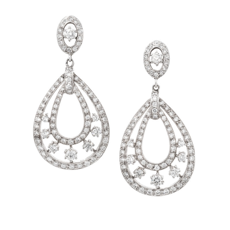 Containing 162 round brilliant cut diamonds weighing approximately 3.50 carats total. Mounted in white gold.