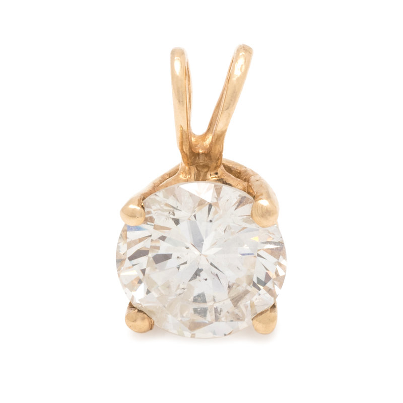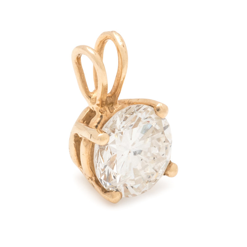 Containing one round brilliant cut diamond weighing approximately 1.60 carats. Mounted in yellow gold.